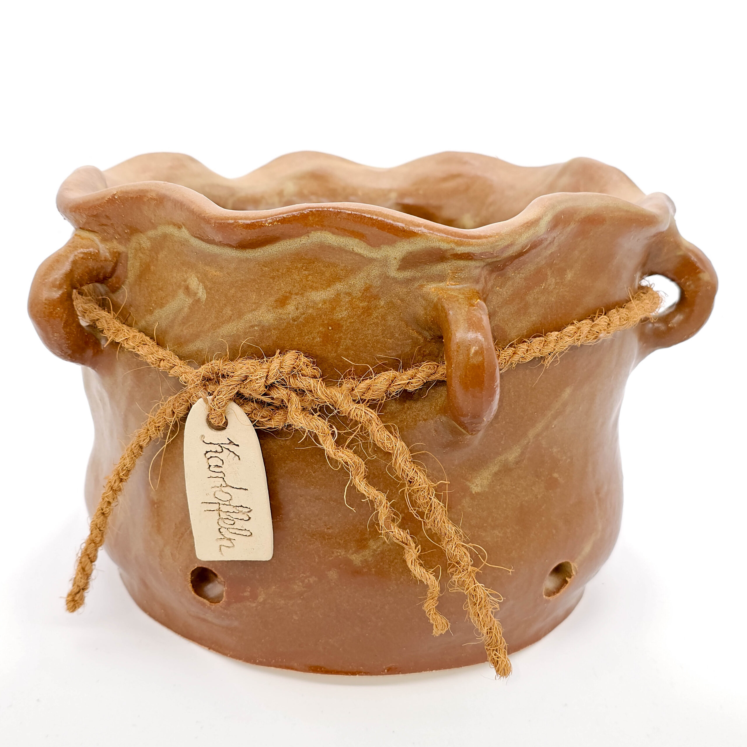 Der Kartoffelsack ist eine liebevoll gestaltete, handgefertigte Dekoration und Aufbewahrung, die einem Kartoffelsack nachempfunden ist. Mit seiner rustikalen Optik und detailgetreuen Gestaltung bringt er eine gemütliche, ländliche Atmosphäre in jedes Zuhause. Der Ton sorgt für Stabilität und Langlebigkeit, während die optische Gestaltung dem Kartoffelsack einen authentischen, charmanten Look verleiht. Ideal als originelle Dekoration oder als Geschenk für Liebhaber von ländlichem Stil und handwerklicher Kunst.